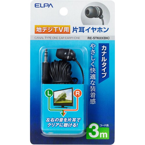 【エルパ 地デジ用イヤホン 3m RE-STK03(BK)の商品詳細】