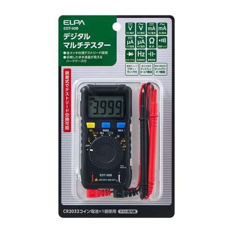 | CR2032コイン電池 1個(テスト用 内蔵)、テストリード 1組、ハードケース、取扱説明書 |
