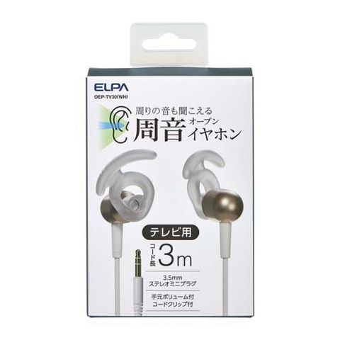 オープンイヤホン テレビ 3m ホワイト (1個)