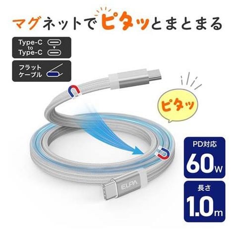 ELPA(エルパ) マグネットUSBケーブル CtoC PD60W 1m MCA-FCC1060 WH (1個)