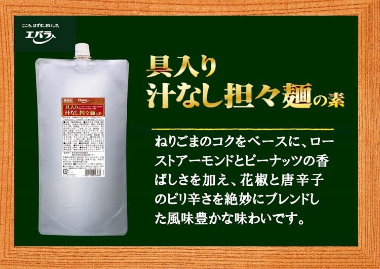 | 砂糖(国内製造)、水あめ(国内製造)、醤油、豆板醤、りんご酢、甜麺醤、ピーナッツペースト、粒状大豆たん白、ごま油、白ごま、香味油、大豆粉、食塩、チキンエキス、アーモンド、花椒、蛋白加水分解物、唐辛子、にんにく/調味料(アミノ酸)、カラメル色素、増粘剤(加工でん粉、キサンタンガム)、酸化防止剤(ビタミンE)、(一部に小麦・落花生・アーモンド・ごま・大豆・鶏肉・豚肉・りんごを含む) |
