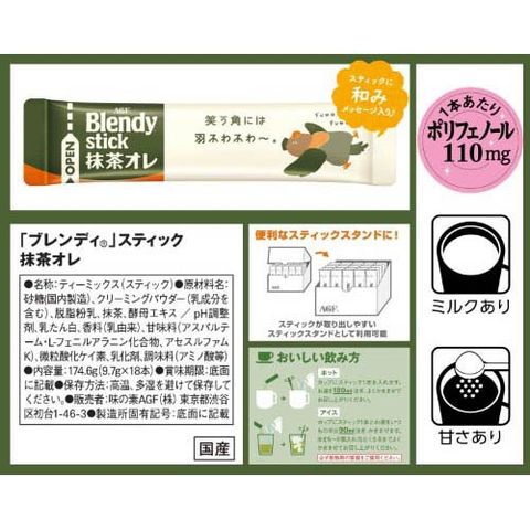 AGF ブレンディ スティック 抹茶オレ (9.7g×18本入)