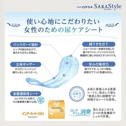 ●インナーシート サラスタイルは使い心地にこだわりたい女性のための尿ケアシートです。