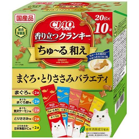 チャオ 香り立つクランキーちゅ~る和え まぐろ・とりささみバラエティ (20g×10袋入)