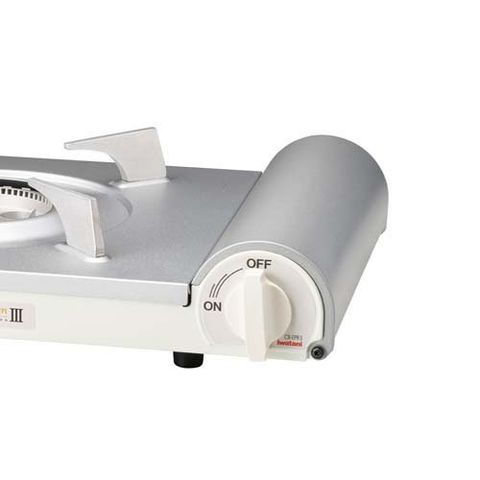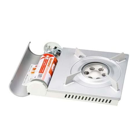 ●ホワイトのカラーがスタイリッシュな、高級感あふれるデザインのカセットガスコンロ。炎が内側に出るエコバーナーでムダ火を抑制。