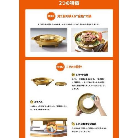 ●焼き部分と鍋部分がセパレート仕様&フッ素樹脂加工のためお手入れが簡単です。