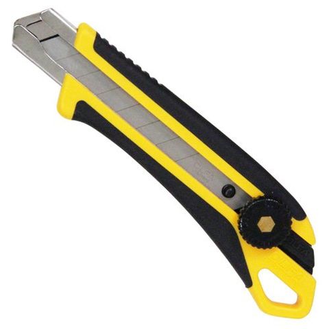 落下防止用コード取付穴を備えたネジロック式大型カッターナイフです。