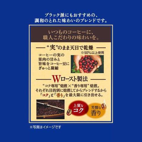 ●Wロースト製法:「コク専用」焙煎×「香り専用」焙煎。それぞれ目的別に焙煎してからブレンド。