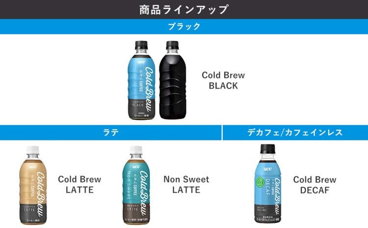 ●「UCC Cold Brew Non Sweet LATTE PET500ml(ユーシーシーコールドブリューノンスウィートラテ)」は甘さがないことで後味すっきり、まろやかな水淹れコーヒーが楽しめるアイスカフェラテ。