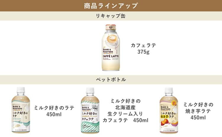 ●「UCC BEANS & ROASTERS ミルク好きのラテ PET450ml(ユーシーシービーンズ&ロースターズミルク好きのラテ)」ミルク感を引き立たせるやさしいコーヒーの味わい。