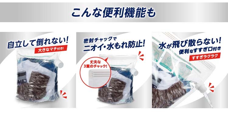 ●場所を選ばず、どこでも簡単にお洗たくができるお洗たく専用袋(ワンパックアタックZERO3袋付き)。