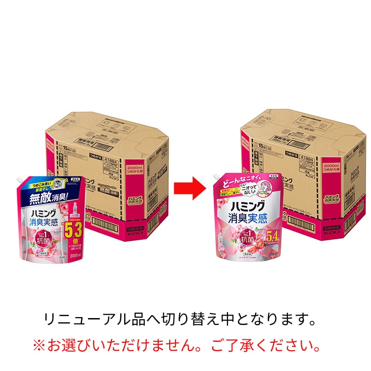 ハミング 消臭実感 柔軟剤 ローズ&フローラルの香り つめかえ用 メガサイズ 梱販売用 (2000ml*4袋入)
