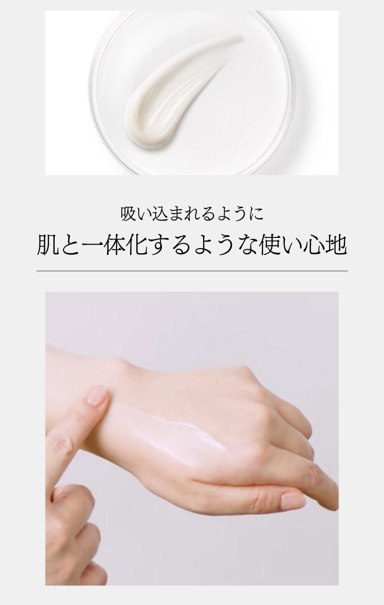 ・夜、化粧水や乳液のあとに適量(直径1.5cmくらい)を手に取り、顔全体になじませます。
