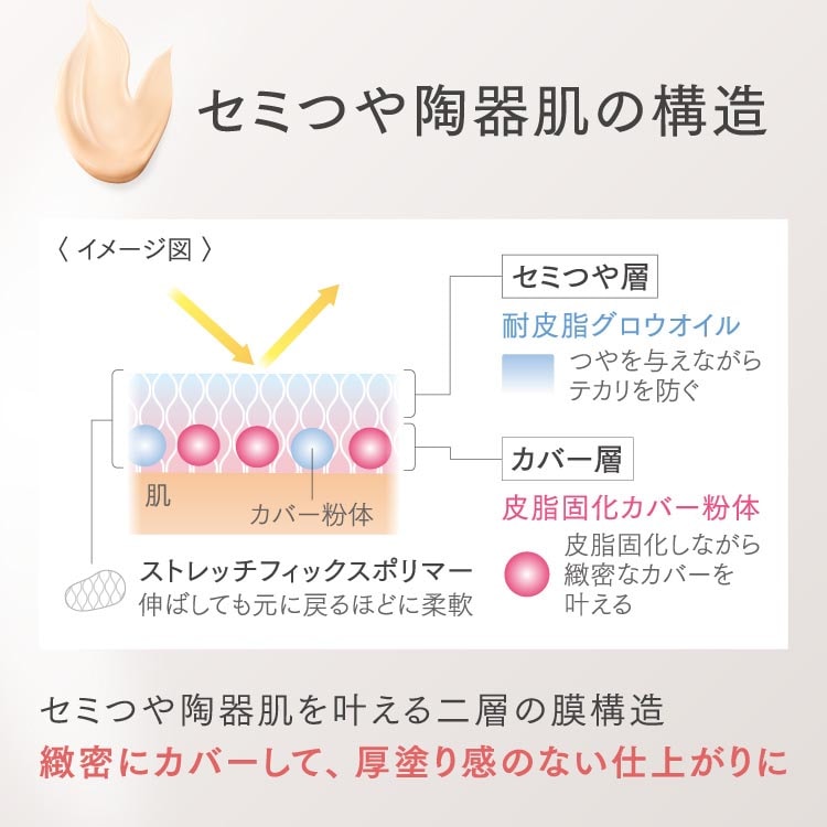 ●仕上がった直後から美しい セミつや陶器肌※が持続する リキッドファンデーション。