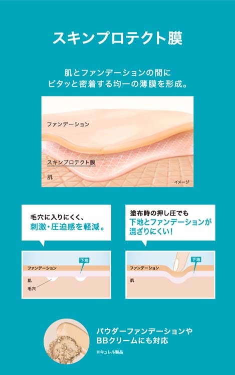 ・塗った瞬間の、しっとりと密着する感覚がスキンプロテクト膜が肌を守るサイン。