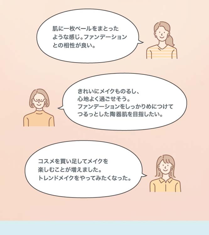 ・ファンデーション※3のごわつきを防ぎ、ためらいがちな「しっかりメイク」まで楽しめる。