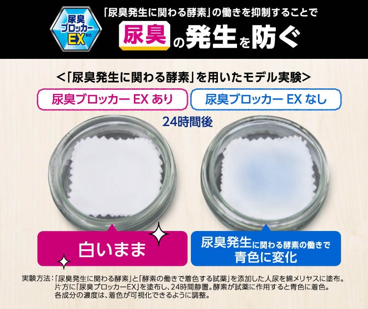 ●尿臭をもとからブロックする花王の消臭成分、尿臭ブロッカーEX配合