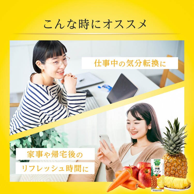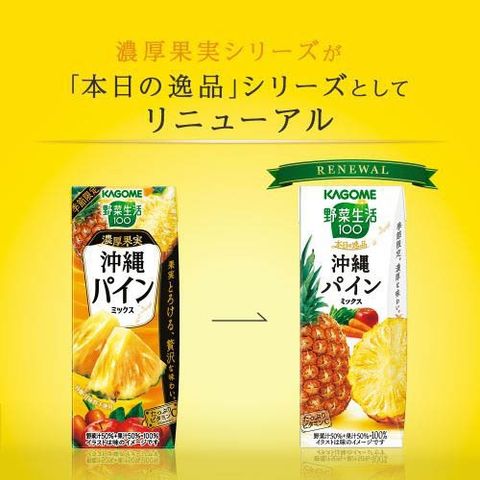 ●沖縄の太陽の光をたっぷり受け、甘味と酸味のバランスが良い沖縄県産パインの味わいに仕上げた野菜&果実100%ミックスジュースです。
