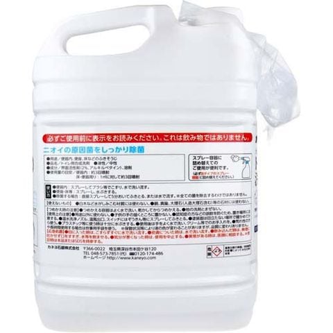 | 個装重量:約5000g 内容量:4.8kg ★用途 便器内、便座、床などのふきそうじ ★液性 中性 ★使用量の目安 便器内:約3回噴射 床・便器周り:1平方メートルに対して約3回噴射 |