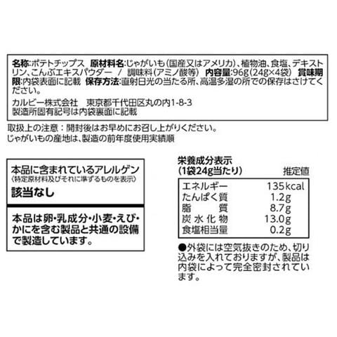 | じゃがいも(国産又はアメリカ)、植物油、食塩、デキストリン、こんぶエキスパウダー / 調味料(アミノ酸等) |