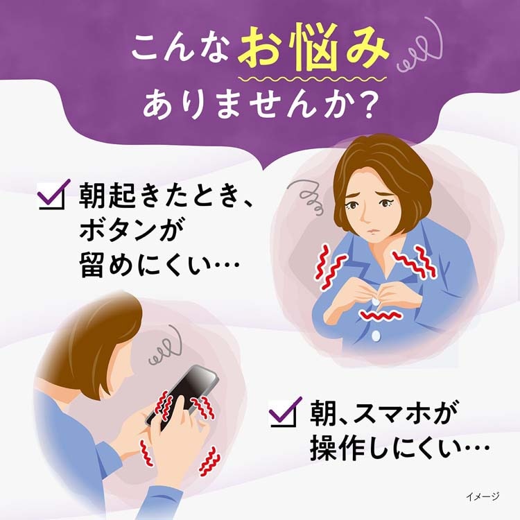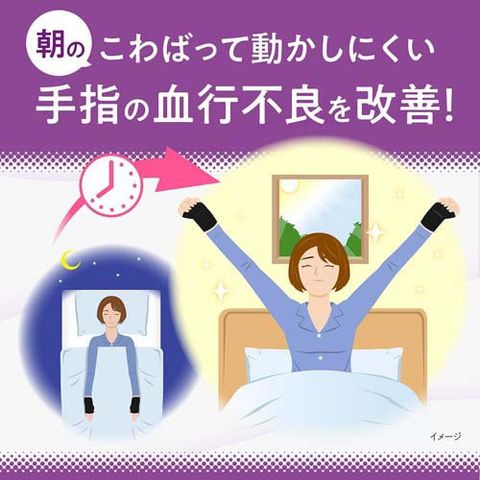 ●就寝時に使用すると、起床時にこわばって動かしづらい手指の血行不良が軽減されます。