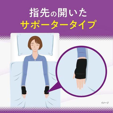 ●指先の開いたサポーターなので、就寝時でもストレスなく使用できます。