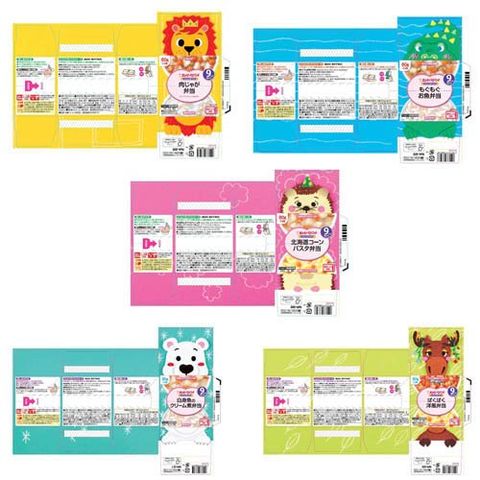 | ★もぐもぐお魚弁当:さけ・大豆 ★肉じゃが弁当:牛肉・大豆・鶏肉鶏肉加工品の鶏肉は、卵のたんぱく質が付く工程で加工しています。 ★北海道コーンパスタ弁当:乳成分・小麦・鶏肉★白身魚のクリーム煮弁当:乳成分・小麦・さけ・鶏肉 ★ぱくぱく洋風弁当:乳成分・小麦・鶏肉鶏肉加工品の鶏肉は、卵のたんぱく質が付く工程で加工しています。 |