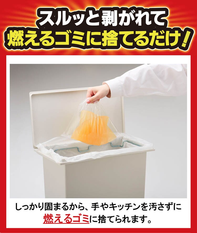 ●一包で600mLの油を固めて、手やキッチンを汚さずに、簡単に油を捨てられます。