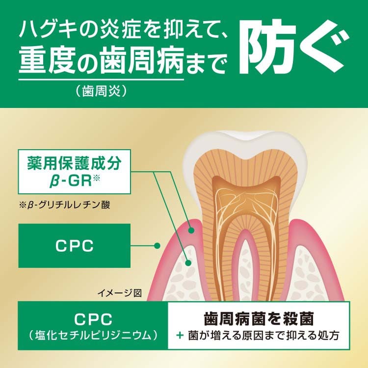 ●先制殺菌処方。歯周病菌を殺菌するだけでなく菌の増殖も抑える。