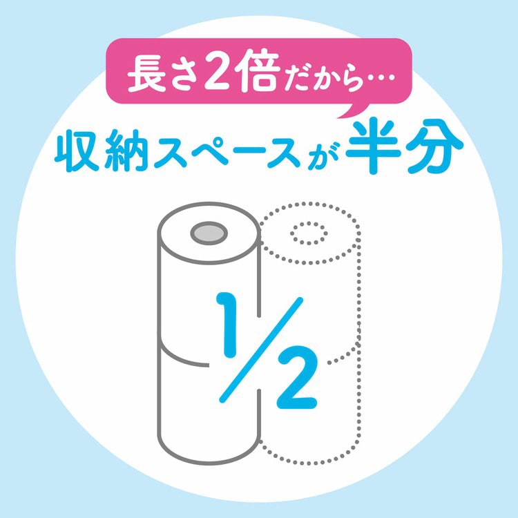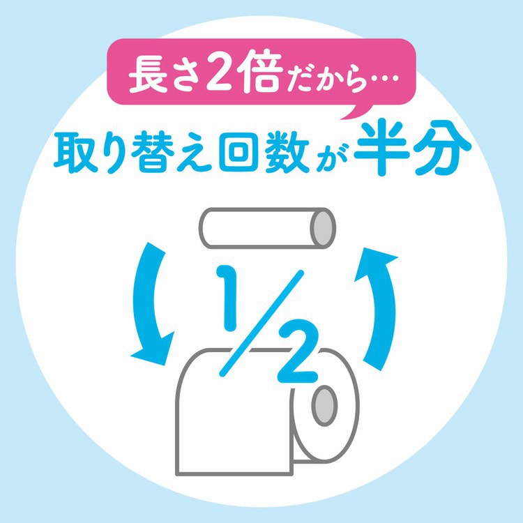 ●1ロールで2ロール分の長さの、2倍巻き(※)トイレットロール。