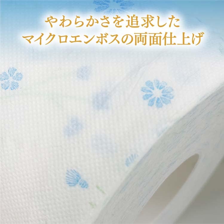 ●パルプ配合にこだわり、ふんわりなめらか。メーカー製品比116%※1) の肌ざわり。ふんわりとした厚みを生み出すマイクロエンボス加工を両面に施すことにより、真のやわらかさを追求しました。