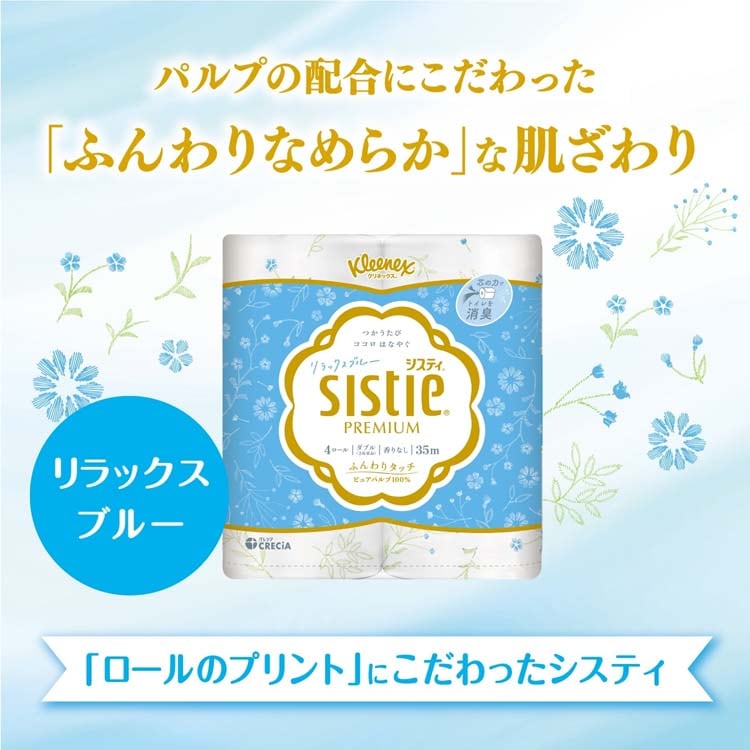 クリネックス トイレットペーパー システィ リラックスブルー ダブル 香りなし 消臭 (35m×4ロール)