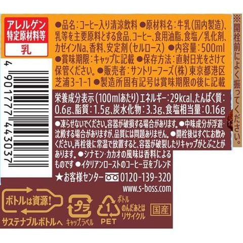 牛乳(国内製造)、乳等を主要原料とする食品、コーヒー、食用油脂、食塩/乳化剤、カゼインNa、香料、安定剤(セルロース)