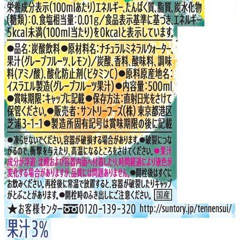 ナチュラルミネラルウォーター、果汁(グレープフルーツ、レモン)/炭酸、香料、酸味料、調味料(アミノ酸)、酸化防止剤(ビタミンC)