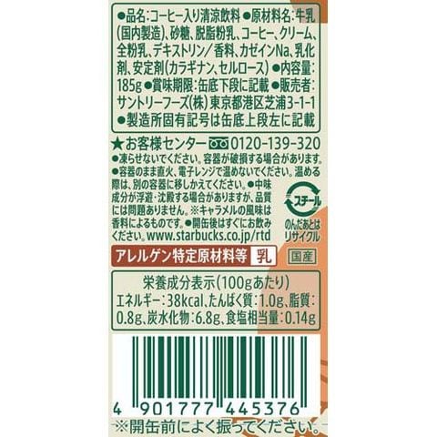 | 牛乳(国内製造)、砂糖、脱脂粉乳、コーヒー、クリーム、全粉乳、デキストリン/香料、カゼインNa、乳化剤、安定剤(カラギナン、セルロース) |