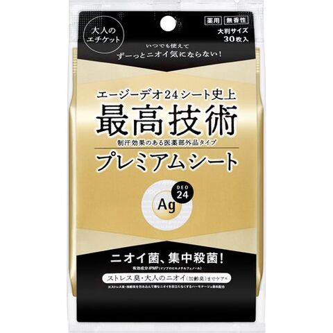 エージーデオ24 プレミアムデオドラント シャワーシート 無香性 大判サイズ (30枚入)