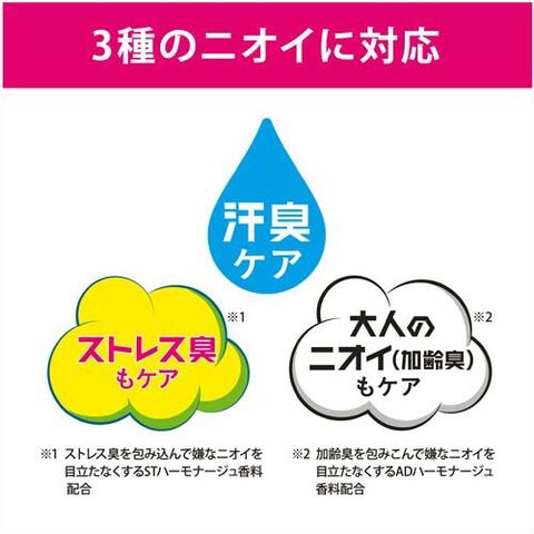 ※ストレス臭・加齢臭を包み込んで嫌なニオイを目立たせなくするハーモナージュ香料配合。効能・効果:ワキガ(腋臭)、皮ふ汗臭、制汗
