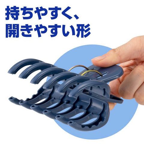 ●6つに分かれた先端と強力ダブルバネで、寝具類など大物もしっかりとはさみます。