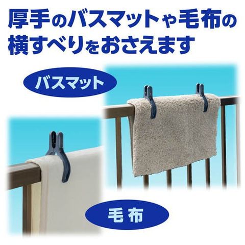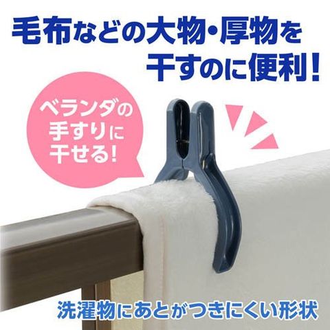 ●ベランダの手すりに合わせた形状で、ガッチリはさむ大型ピンチです。