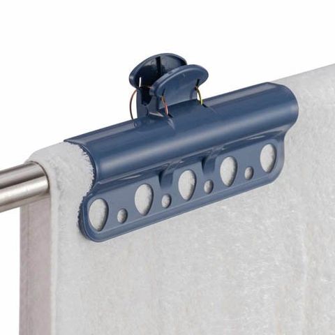 ●クリップ式で物干し竿に簡単に取り付けられて、風によるハンガーの横すべりやズレを抑えます。