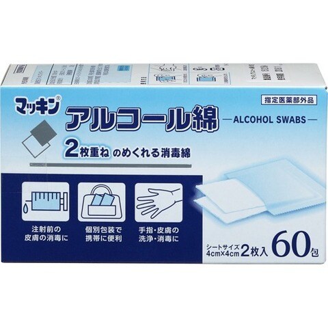 ●携帯に便利な個別包装のアルコール消毒綿です。