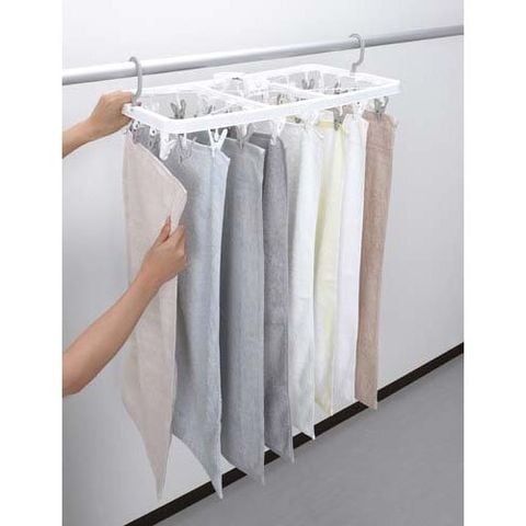 ●サイドフック付きで、ズボンやシーツなど丈の長い洗濯物を干す時や、マンション等のベランダの低い竿に干す時に便利です。