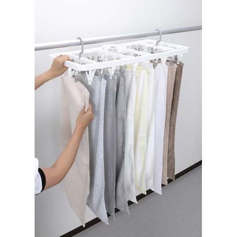 ●サイドフック付きで、ズボンやシーツなど丈の長い洗濯物を干す時や、マンション等のベランダの低い竿に干す時に便利です。