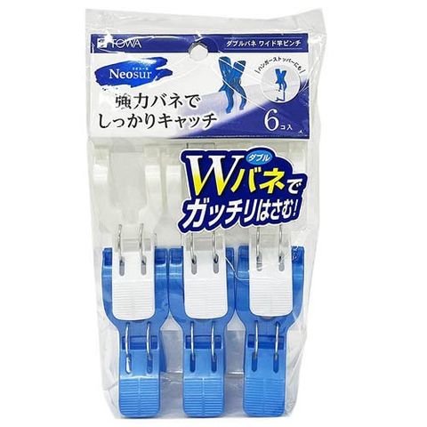 洗濯バサミ ネオスール ダブルバネ ワイド竿ピンチ ホワイト・ブルー (6個)