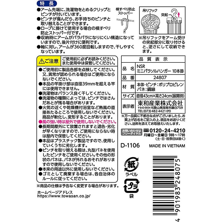 ●小物類を干すのに手頃な大きさで、使い勝手のよいミニ洗濯ハンガーです。