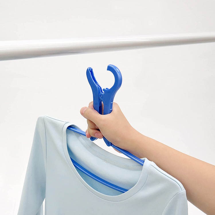 ●ワンタッチで洗濯物の首元を伸ばさずに干せるので、お気に入りの洋服も安心して干せます。