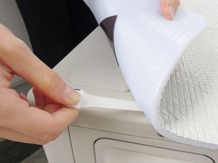 | サイズ:約幅850×奥行400×厚さ5mm(※付属品含まず) 重量:約80g(※付属品含まず) 材質:本体:ポリエチレン(アルミ蒸着)・ポリエチレン、マグネット/ゴム磁石、両面テープ/ポリエチレン、ヒモ/ポリエステル |