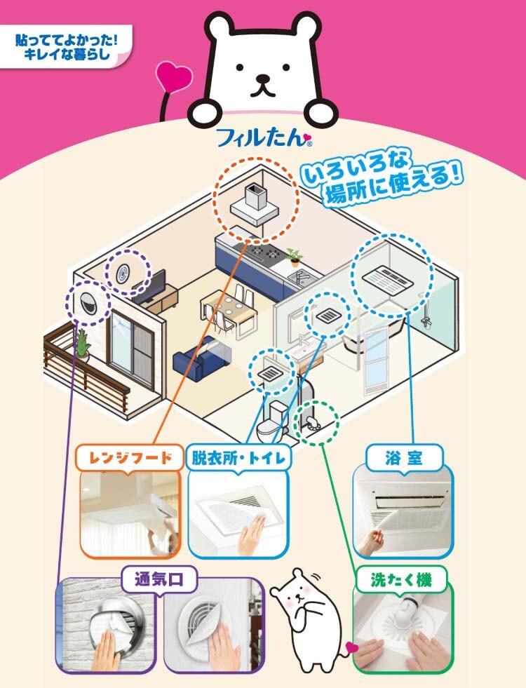・フィルターを取外した際、まれにのり残りする場合があります。その際は固くしぼったフキンでふき取って下さい。