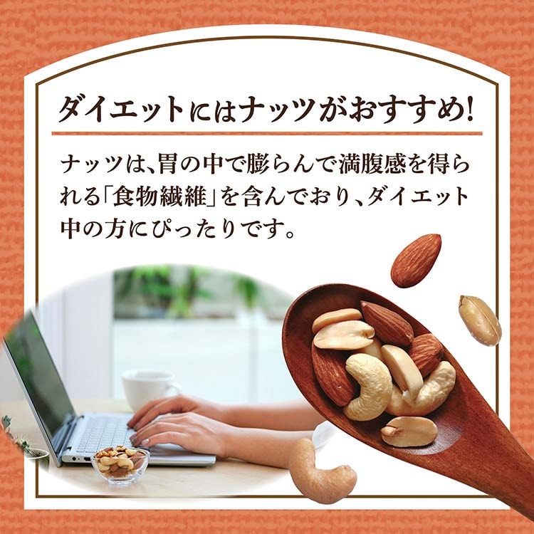 ●食塩無添加のアーモンド・ピーナッツ・カシューナッツの食べあわせをお楽しみください。