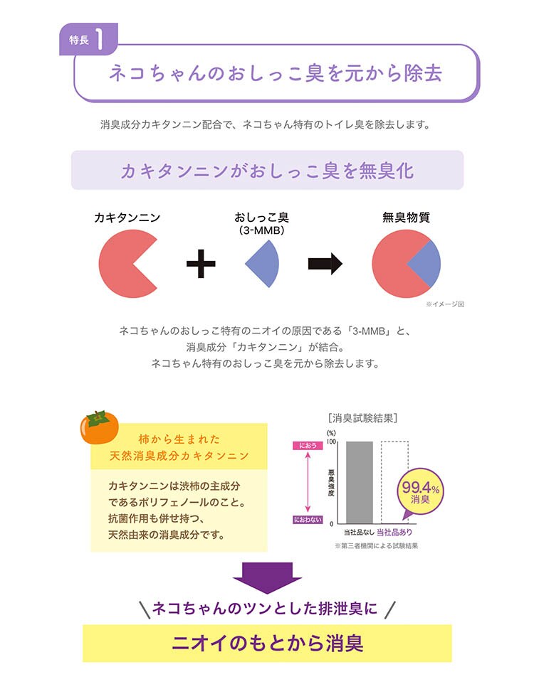 ●猫のおしっこ特有のニオイに効く消臭成分を配合!おしっこ臭を元から除去!